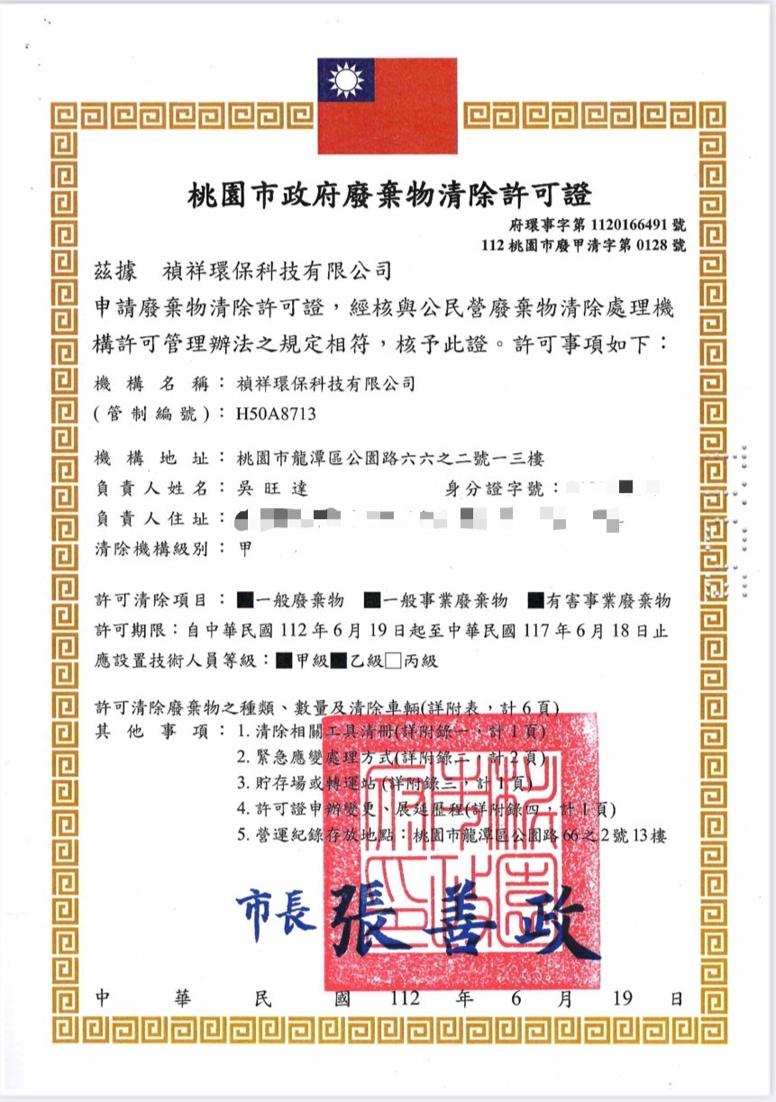 本公司成立於101年7月,專注於廢棄物清運與處理,取得環保署核發的甲級廢棄物清除許可證。